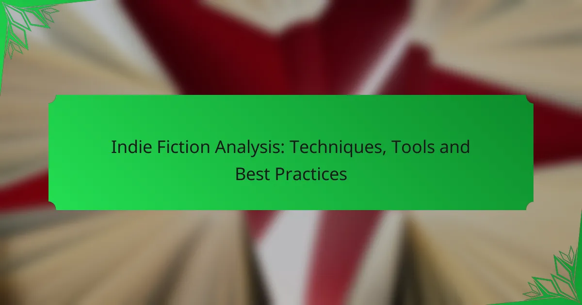 Indie fiction analysis involves a range of techniques that dissect elements such as character development, themes, and narrative structure, providing valuable insights for both readers and writers. By leveraging various tools for organization and editing, creators can enhance their writing process and overall work quality. Emphasizing best practices like consistent reading and community feedback further enriches understanding and skill in indie storytelling.